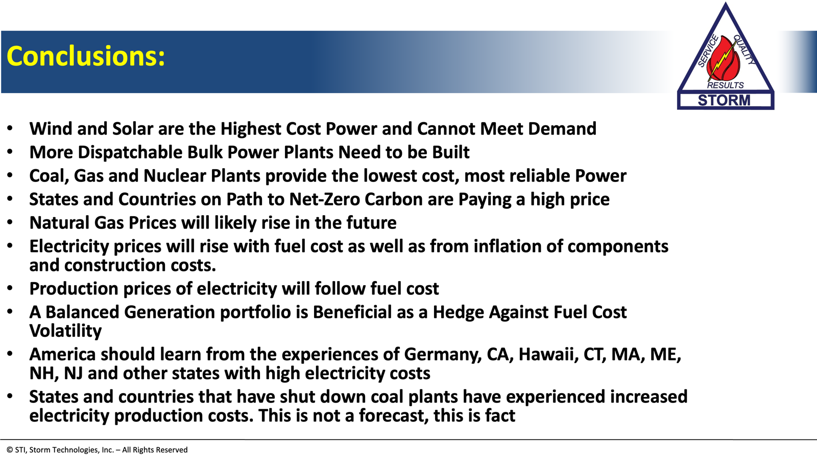 - America should learn from the experiences of Germany, CA, Hawaii, CT, MA, ME, NH, NJ and other states with high electricity costs