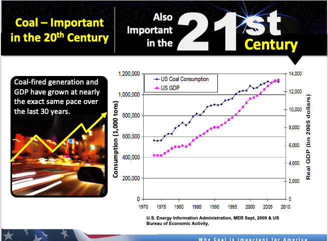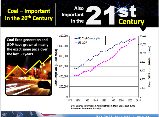 Economic prosperity and coal consumption grew as America prospered 1970-2010. This in spite of the 1973-74 Arab Oil Embargo.