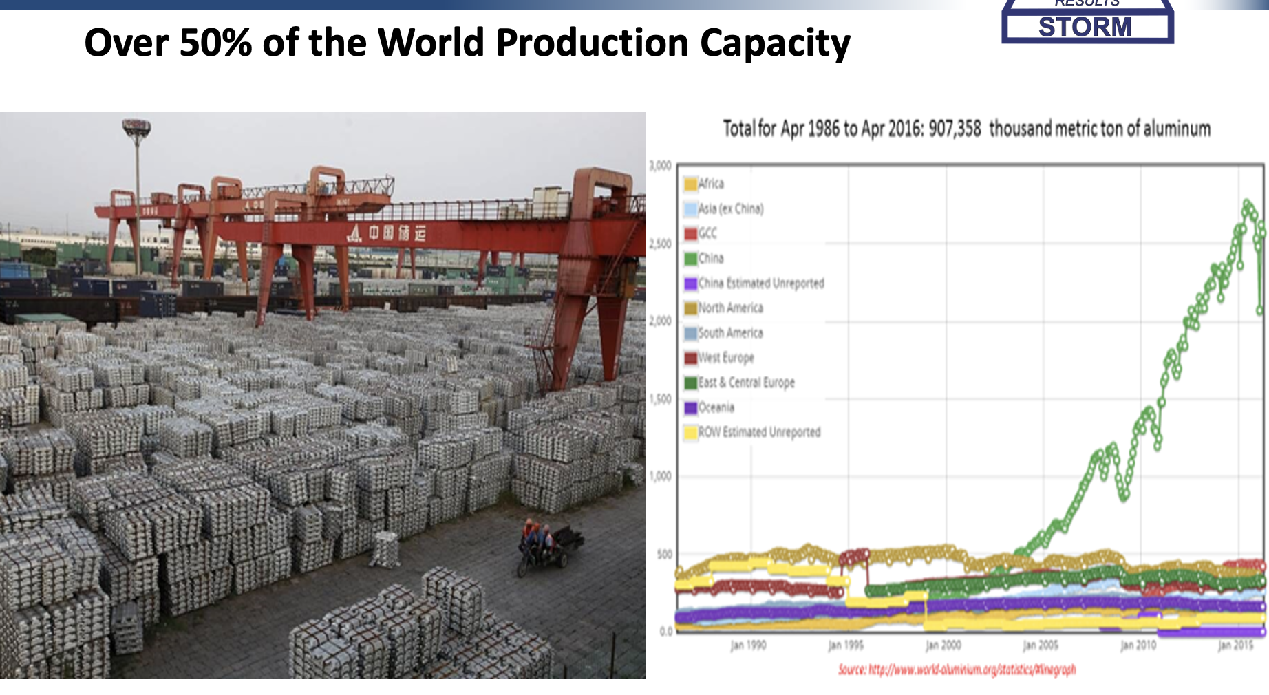 Two important metals are steel and aluminum. The best data available shows that China produces more than 50% of both the steel and aluminum needed by the people of the world. This production requires large amounts of primary energy, which for China means, mostly coal fuel.