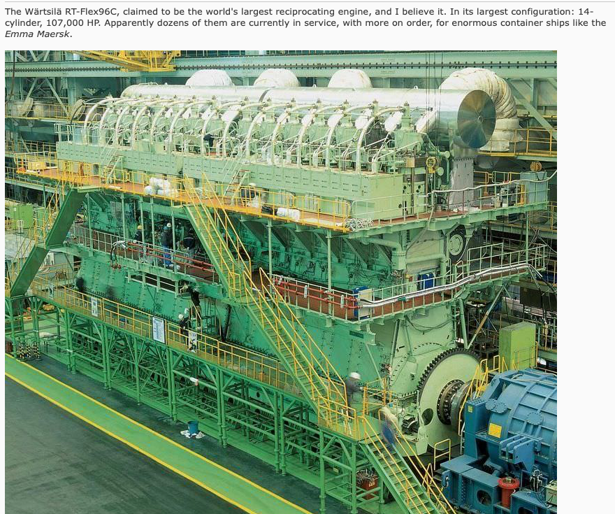 - Largest Diesel Engine ever built-Wartsilla RTA96-C 107,000 HP-2006