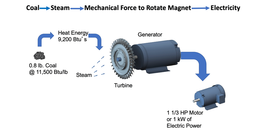Worth remembering is our high school science class definition of a Btu. A British Thermal Unit is the amount of heat that will raise one pound of water (about a pint) one degree Fahrenheit. Another equivalence that is important is that if each Btu was converted into mechanical energy at 100% efficiency, then one Btu=778 Foot pound of work. This is where the term “Heat Engines” comes in. “Heat Engines” sometimes called “Prime Movers” are at the root of a thriving modern economy. Thus, the government measures and reports “Quadrillion Btu’s” as a measure of America’s and the world’s energy production and consumption.