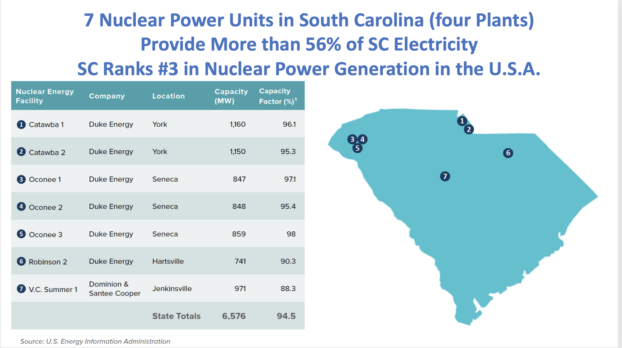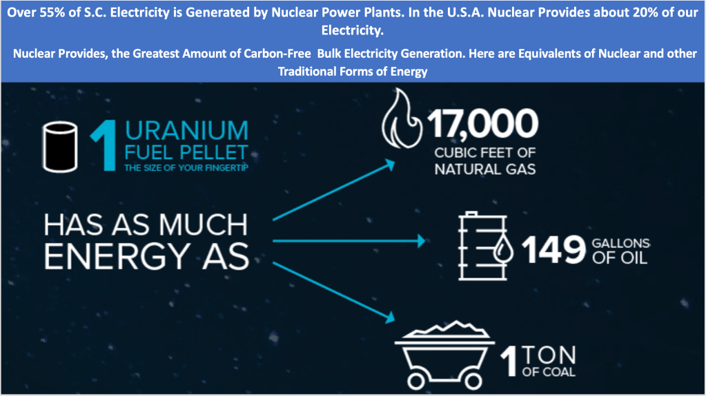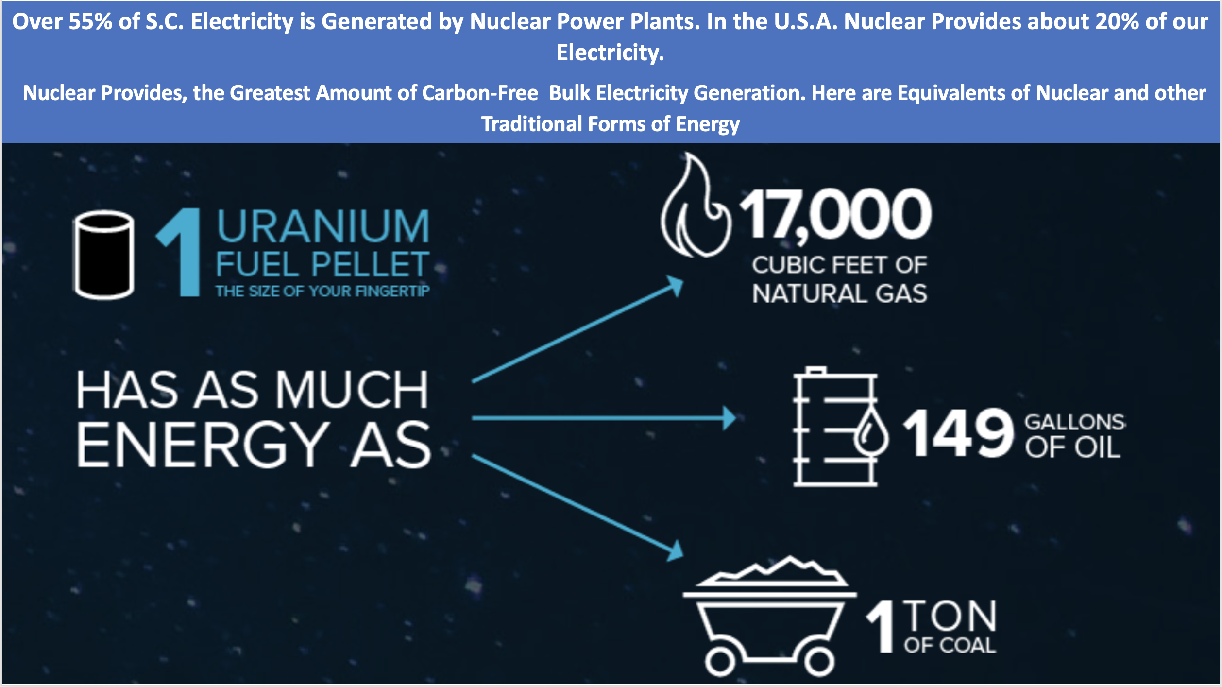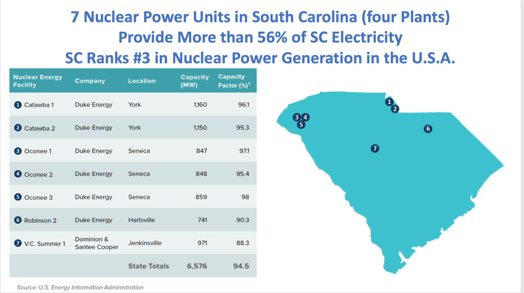 The Oconee Nuclear Plant is another example of Thermal power generation. Allow me to also call this a heat engine. Three units with a total capacity of 2,554 MW. The illustration below is from the Duke Energy Fact Sheet.