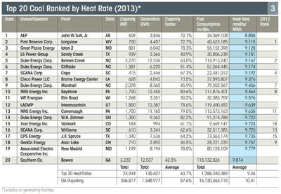 Up until the war on coal, coal plant designers, operators and maintenance personnel took pride in striving for the best overall efficiency. The best yearly coal plant efficiencies were typically from well run supercritical steam pressure units. Duke Power, PEPCO and AEP typically held the top positions. Duke Power’s Marshall and Belews Creek had repeatedly good years. Here is a typical ranking from 2013, Power Engineering Magazine: