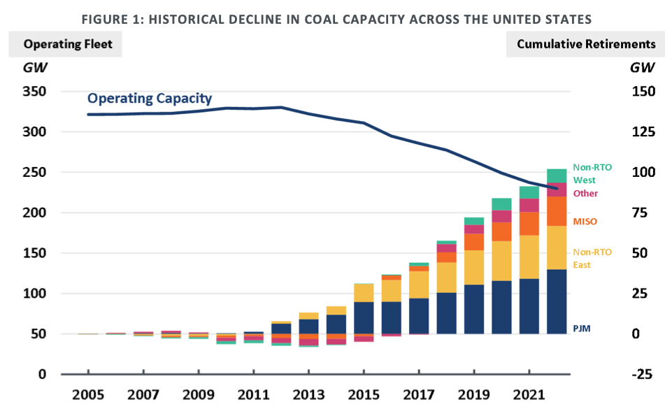 Another report by the Brattle Group showed the coal power generation decline of about 125,000 MW in coal plant capacity since 2005.