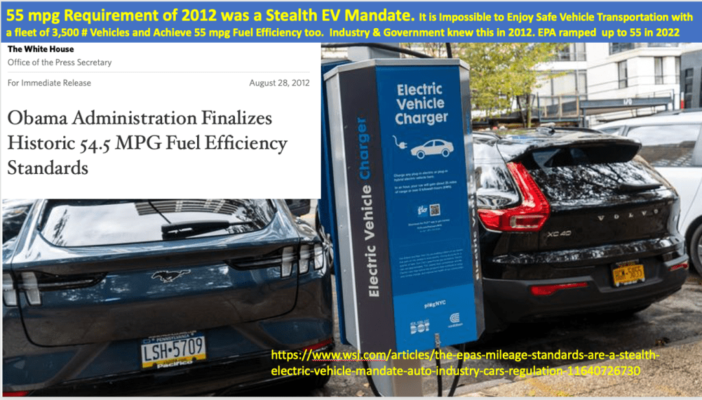 Here is a reminder of the lasting effects of regulations. Obama implemented the EV Mandate in August 2012. Obama’s EPA also forced the EPA Endangerment Finding. It took over a decade for the harm to become noticed by the general public.