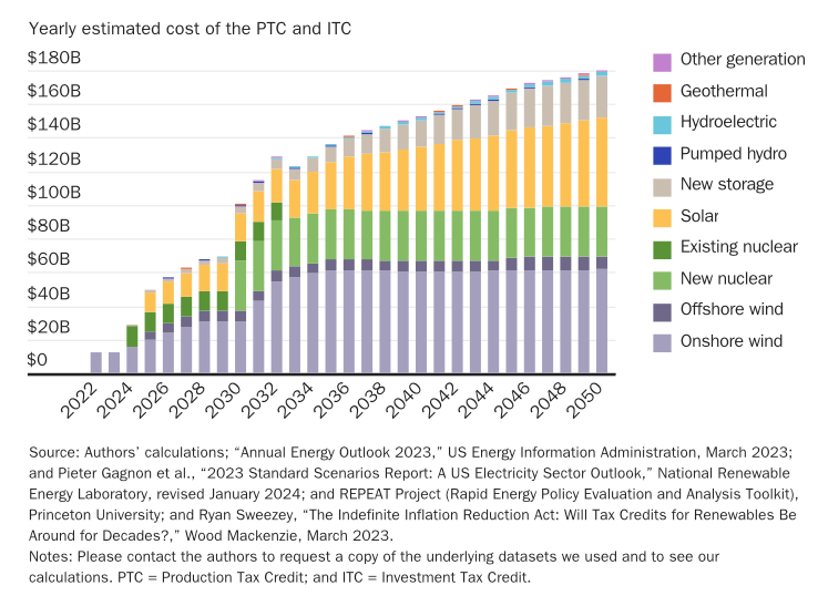The U.S. is on a similar path as Germany, the UK and Spain if the Renewables subsidies of the IRA are not repealed. The CATO Institute has provided a summary of the costs until 2050. Worse yet are the risks of unreliable power supply due to too much intermittent, unreliable, non-Dispatchable solar and wind capacity.