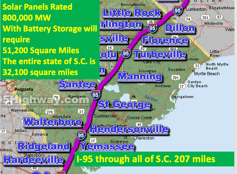 14. Wind, solar and BESS systems need to be backed up by Dispatchable generation. Usually that backup (and planned for S.C) is natural gas fueled generating plants. Therefore, one reason electricity costs are higher with solar and wind is because two to four times the generation capacity is needed over a coal or nuclear plant. Solar and wind are intermittent generators dependent on nature. Solar averages about 6 hours per day of generation.